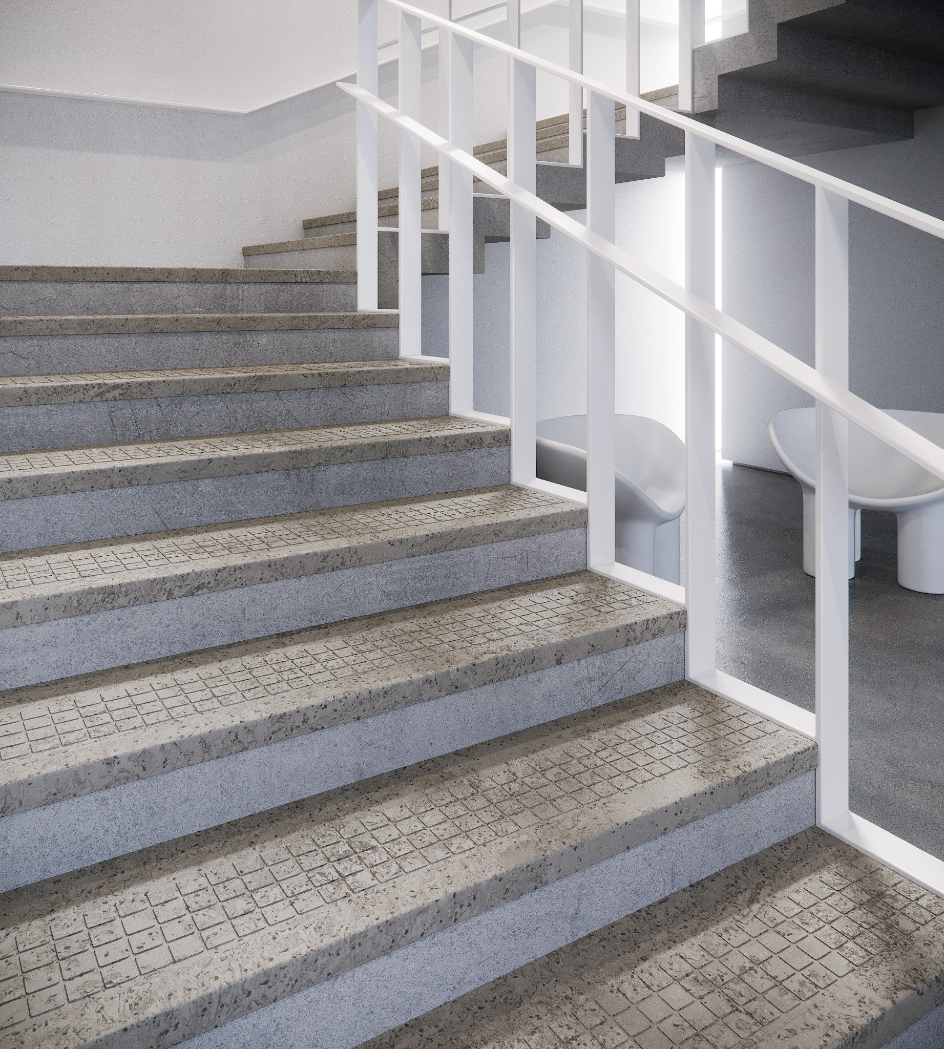 Teles Stair Treads with our superior rubber formulation, thermoset vulcanized rubber (type ts), offers a slip-resistant surface, while preserving design from scuffing, gouging, and abrasions. A vinyl alternative product, our rubber's natural luster requires no waxing or stripping and coordinates with our rubber tile. Available in 15 colors. Select from smooth or simply square texture profiles.